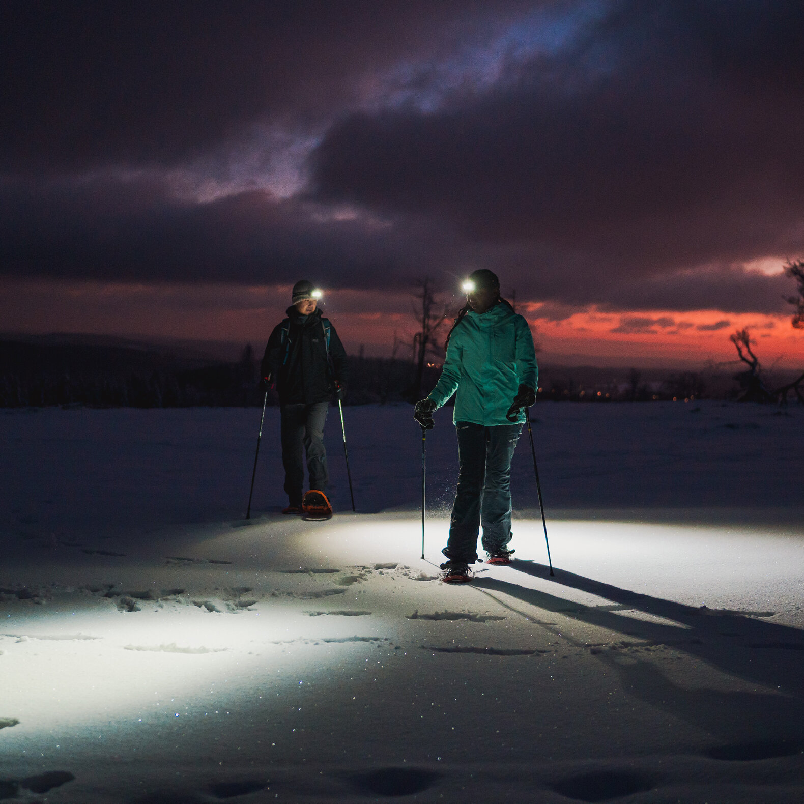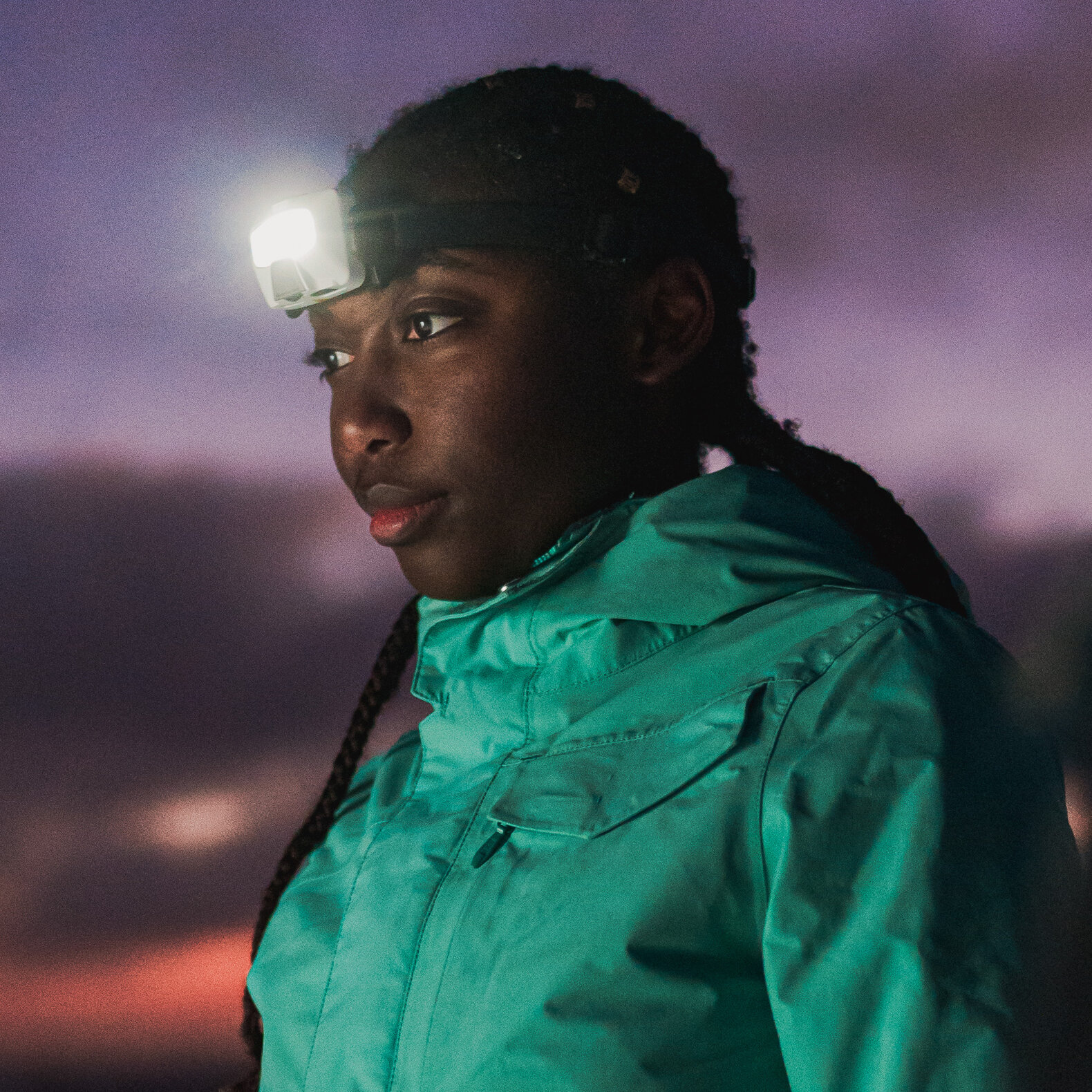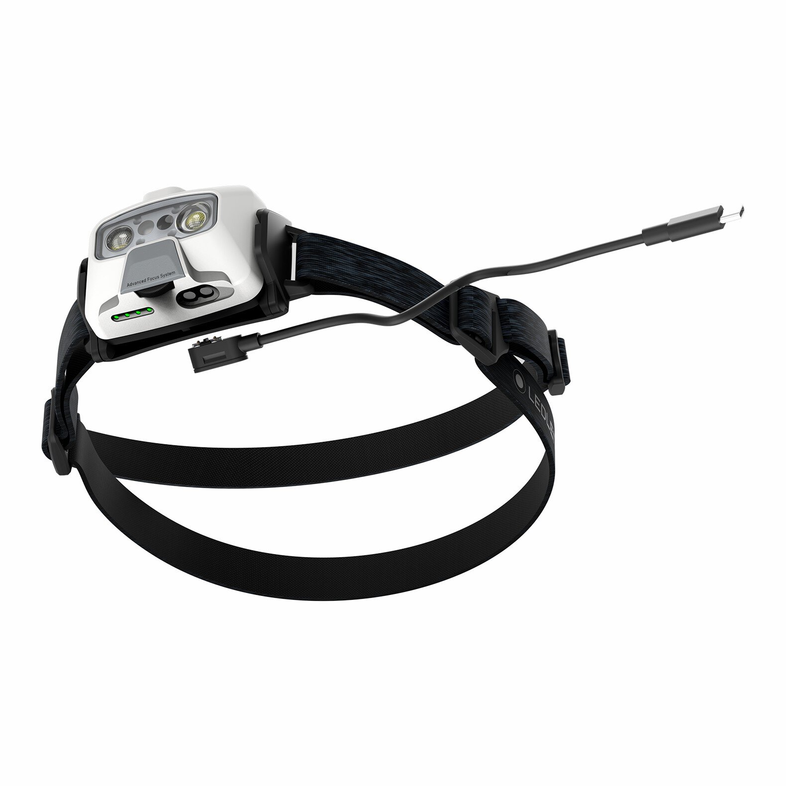 - Slank, genopladelig pandelampe med tre lysstyrker og rødt frontlys