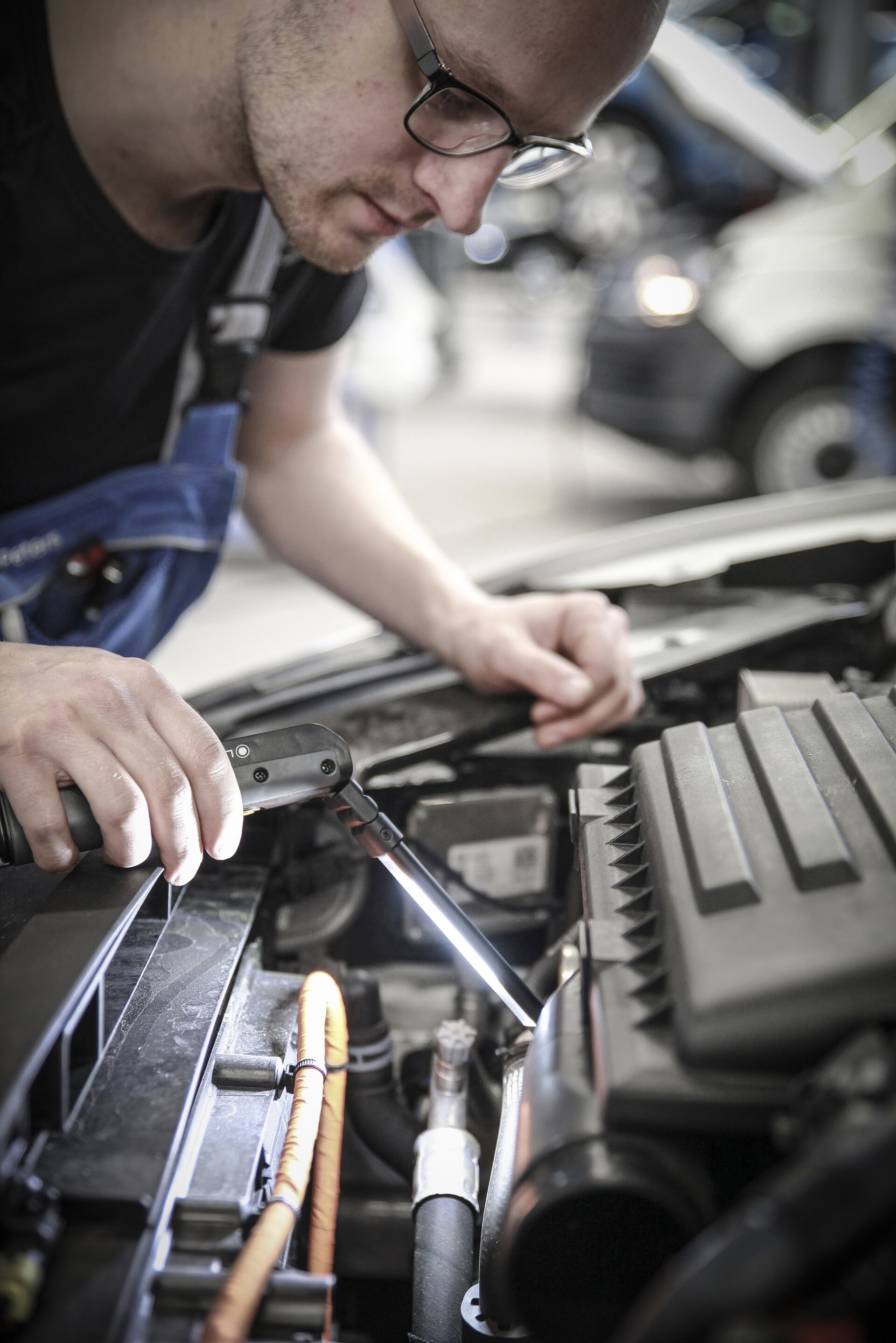 - Ausklappbarer, schmaler Lampenkopf für unzugängliche Stellen