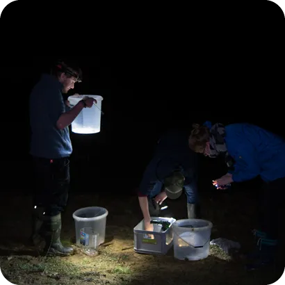 Au printemps, le travail s’intensifie. Dès que les températures remontent, Moritz et son équipe enfilent leurs bottes, ajustent leurs lampes frontales et s’aventurent dans les marais, seuls ou en petits groupes.