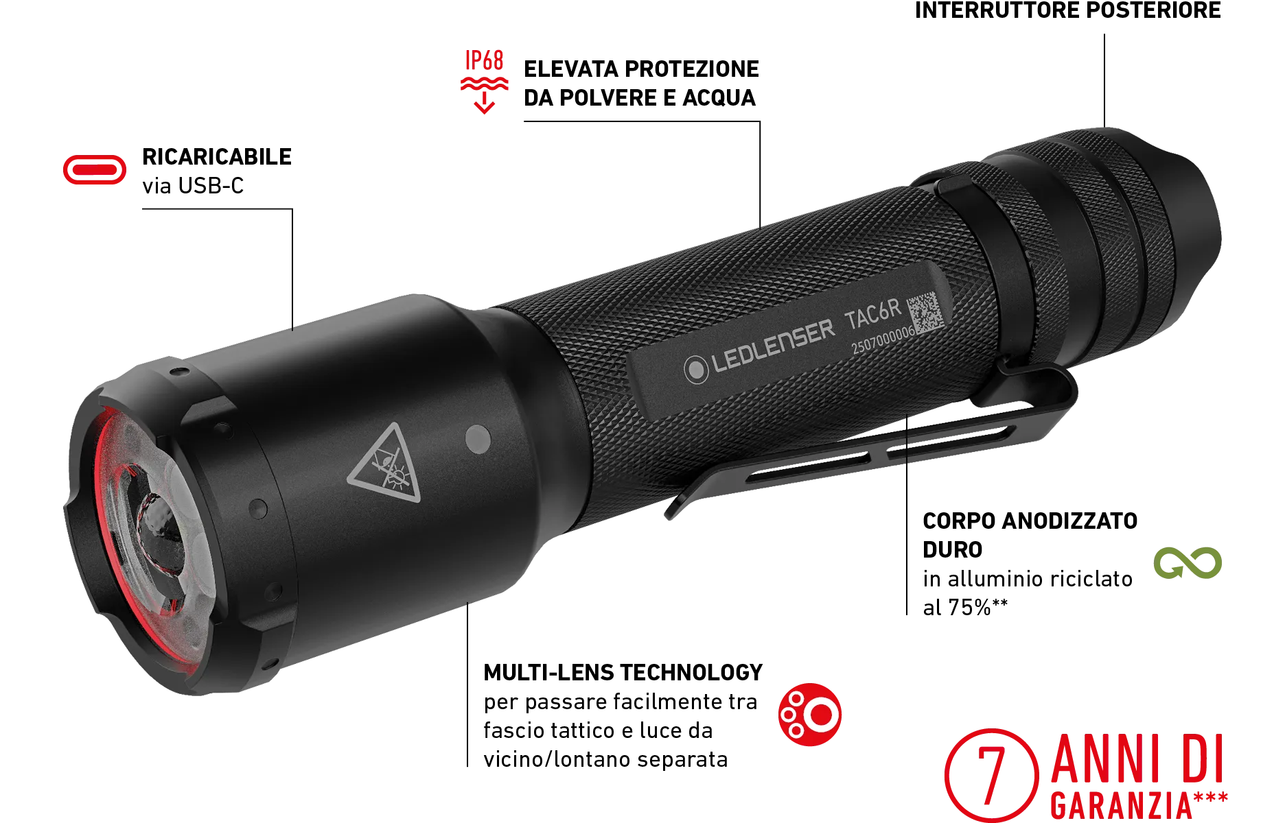 Al suo centro c’è la TAC6R, una torcia tattica robusta, intuitiva da usare e affidabile, progettata per impieghi estremi.