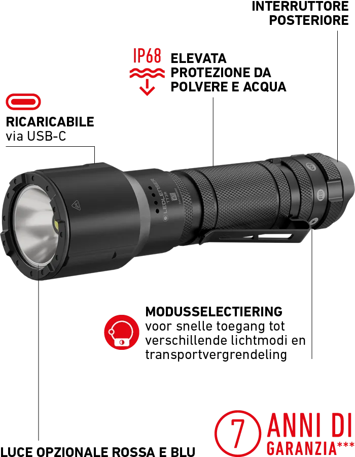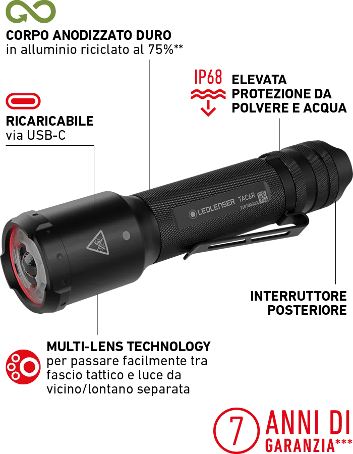 La TAC7R è una torcia estremamente robusta, intuitiva da usare e affidabile, costruita per condizioni difficili.