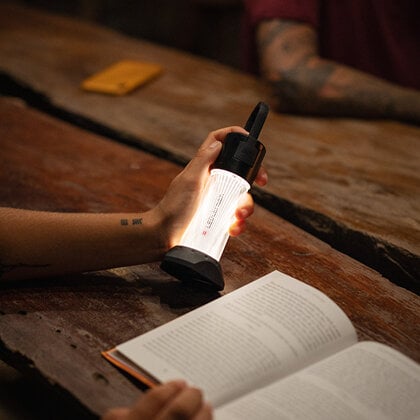 • As a table lamp: For relaxed reading at the camping table, in the seating area or next to you by your sleeping bag.